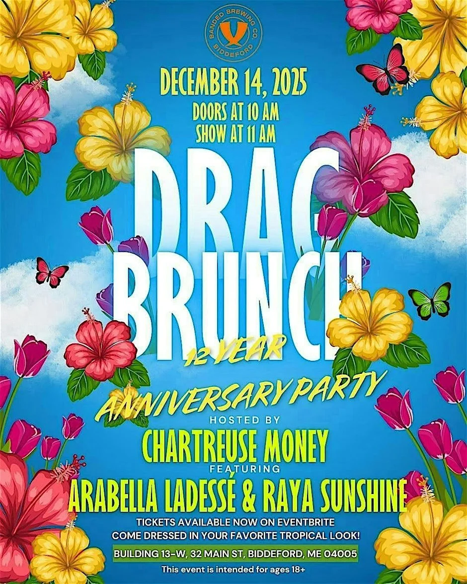 Cap off our anniversary weekend with Drag Brunch! Hosted by the fabulous Chartreuse Money, joined by Arabella Ladesse and Raya Sunshine.